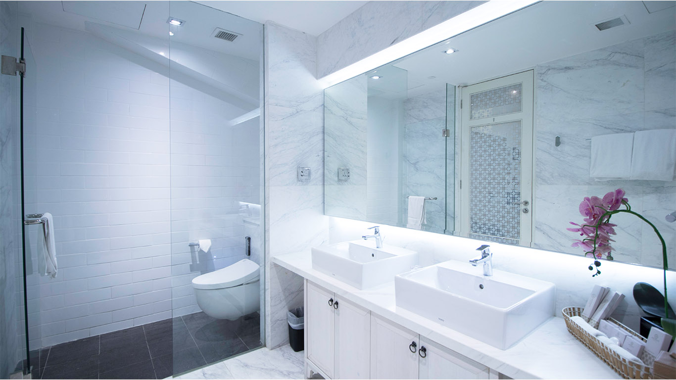 They are bedecked in sophisticated neutral shades, with crisp white furnishings and customised decor. Marbled bathrooms come with top-notch toiletries, and we’ve been told our plush Slumberland mattresses, along with our firm duck feather and micro-fibre pillows, are a great reason to stay in all day! If you do, there’s everything you’ll ever need – help yourself to a fully-stocked and complimentary mini bar, a Dulce Gusto coffee machine, and a selection of Dilmah teas. These are replenished daily for your indulgence.